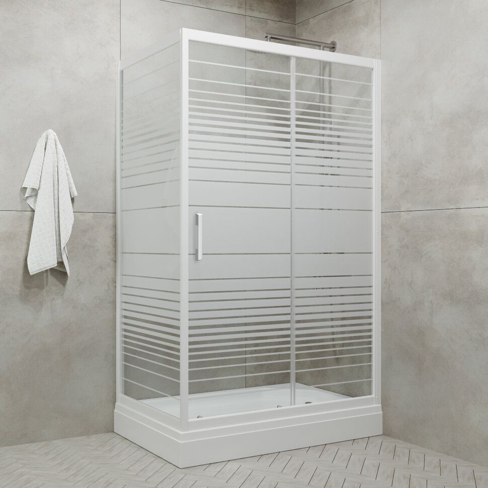 Душевой уголок Triton Фьюжн А 100x80 см с откатными дверцами и низким душевым поддоном. Алюминиевый профиль каркаса покрашен в белый цвет, стекло 4 мм прозрачное с рисунком. Высота душевого поддона 17 см.
