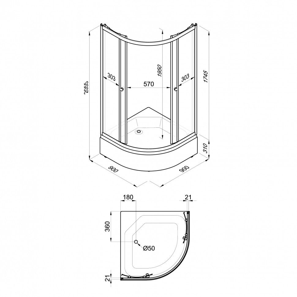 Душевой уголок Triton Грэй Щ0000066465 90x90 см профиль белый стекло тонированное купить