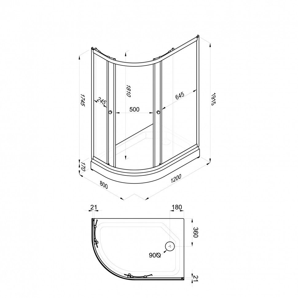 • Высота с поддоном: 191.5 см