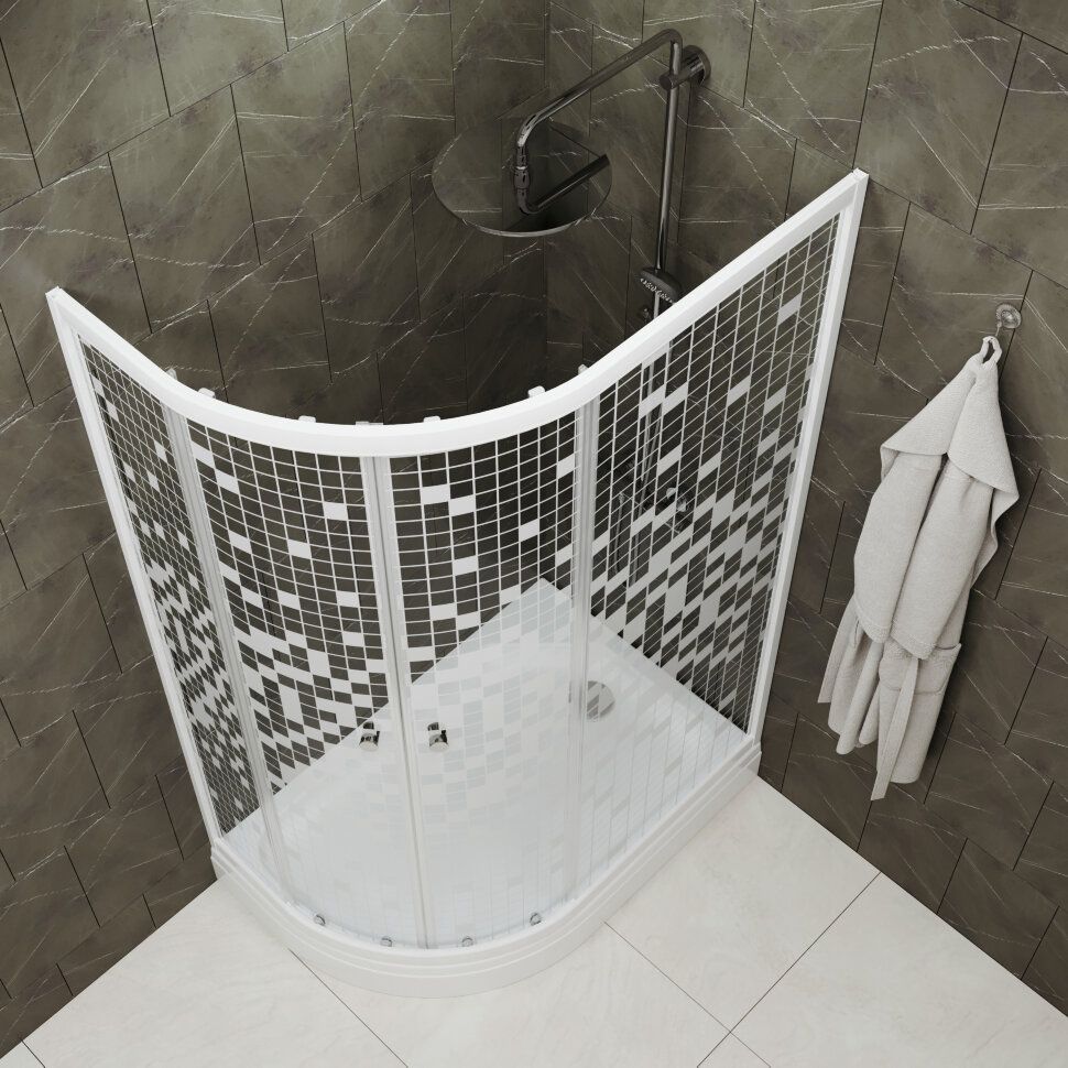 Душевой уголок Triton Коралл Щ0000061781 правый 120x80 см профиль белый стекло мозаика купить