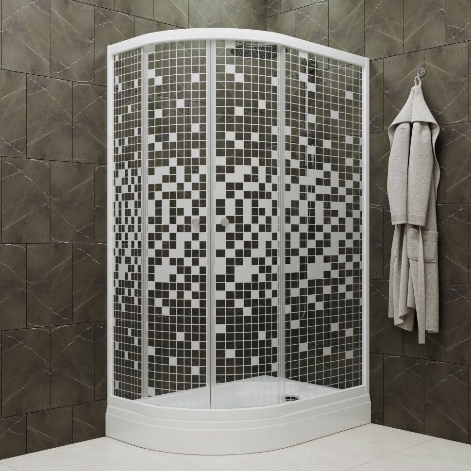 Душевой уголок Triton Коралл Щ0000061781 правый 120x80 см профиль белый стекло мозаика