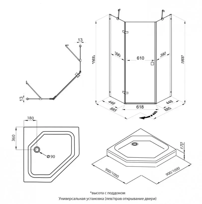 Душевой уголок Triton Сигма Щ0000054218 90x90 см профиль хром стекло прозрачное купить