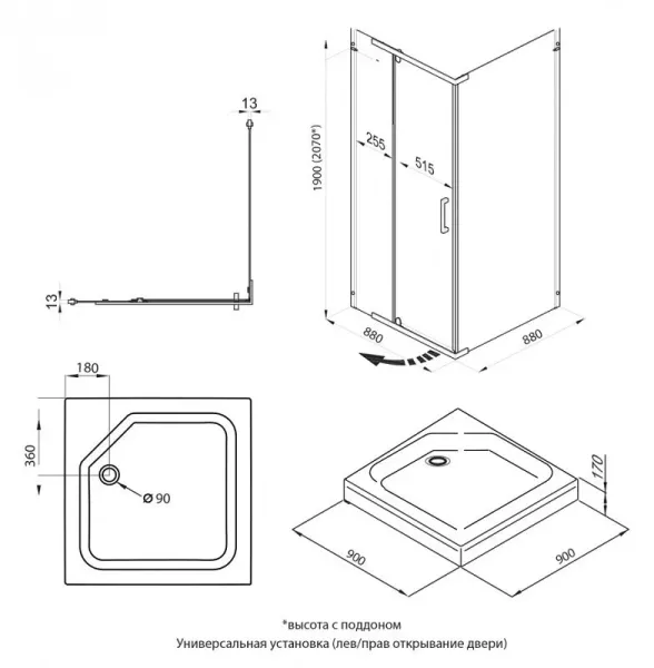 Размер: 90 x 90 x 190 см