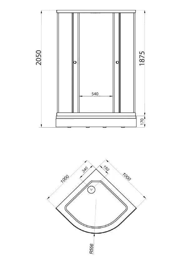 • Высота с поддоном: 205 см