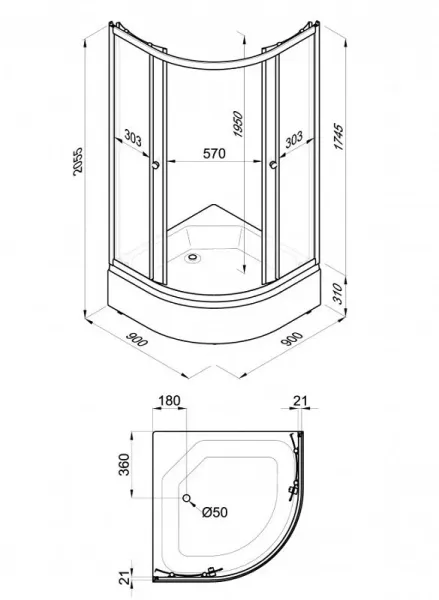 • Высота с поддоном: 205.5 см