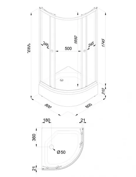 • Высота с поддоном: 205.5 см