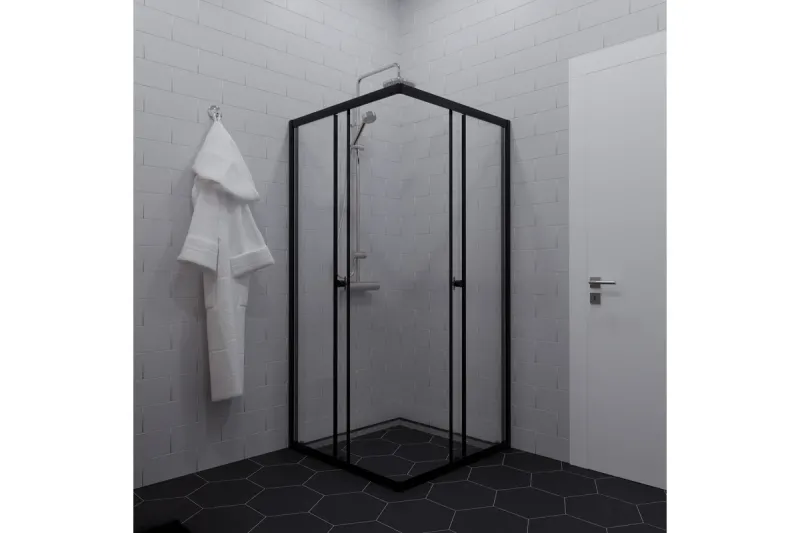 Черный профиль в сочетании с закаленным стеклом толщиной 4 мм, раздвижной механизм дверей и универсальная установка – всё это создаст неповторимую атмосферу в вашей ванной!