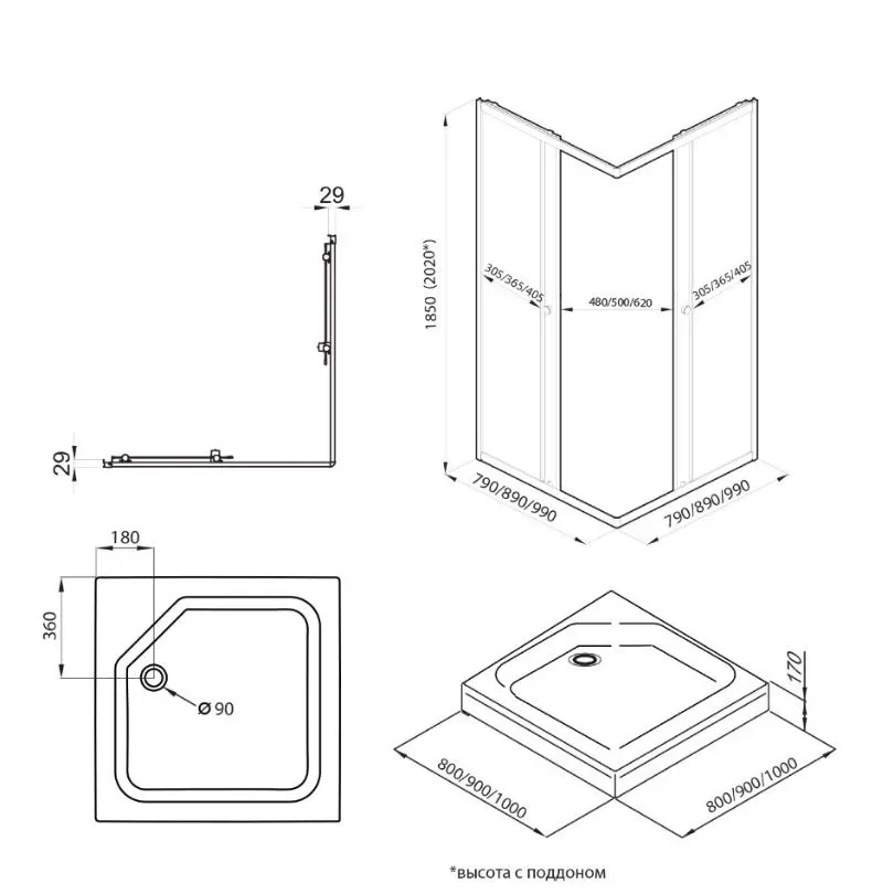 • Размеры: 100х100х185