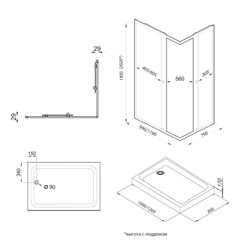 • Без поддона