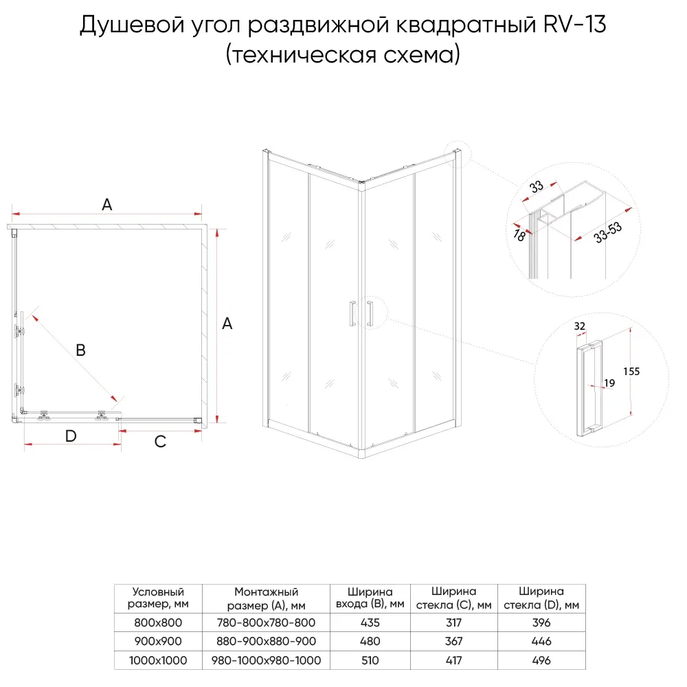 Душевой уголок Veconi Rovigo RV-13, 800x800x1950, черный, стекло прозрачное купить