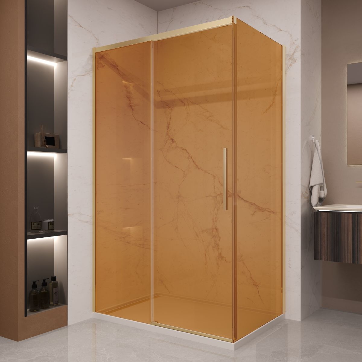 Душевой уголок Vincea Stella VSR-1ST9012GSG, 1200*900, брашированное золото, стекло янтарь купить