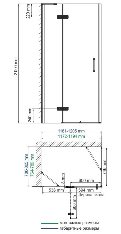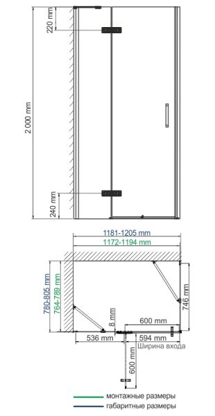 Душевой уголок Wasserkraft Aller 10H06LBLACK 120x80 левый