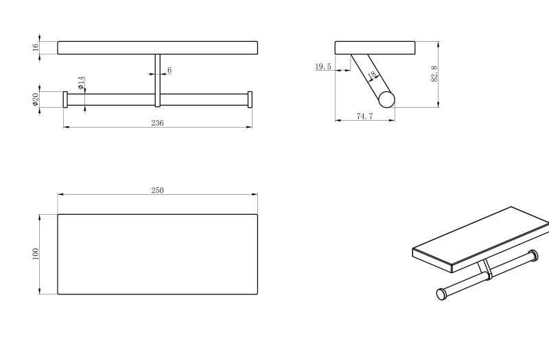 Двойной держатель для туалетной бумаги с полкой WONZON & WOGHAND, Черный матовый (WW-V380... Подробнее