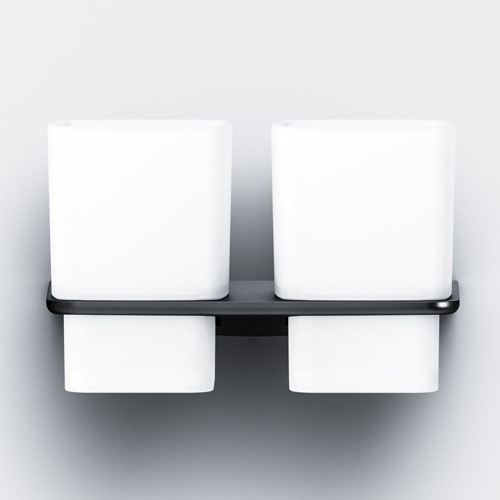 Двойной стеклянный стакан с настенным держателем Am.Pm Inspire 2.0 чёрный матовый A50A343422