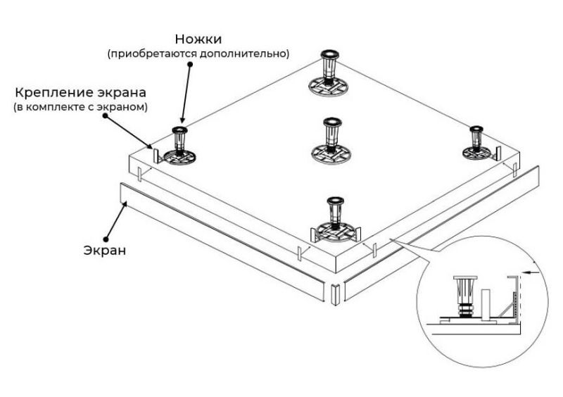 Рекомендованы ножки для поддона для установки экрана: