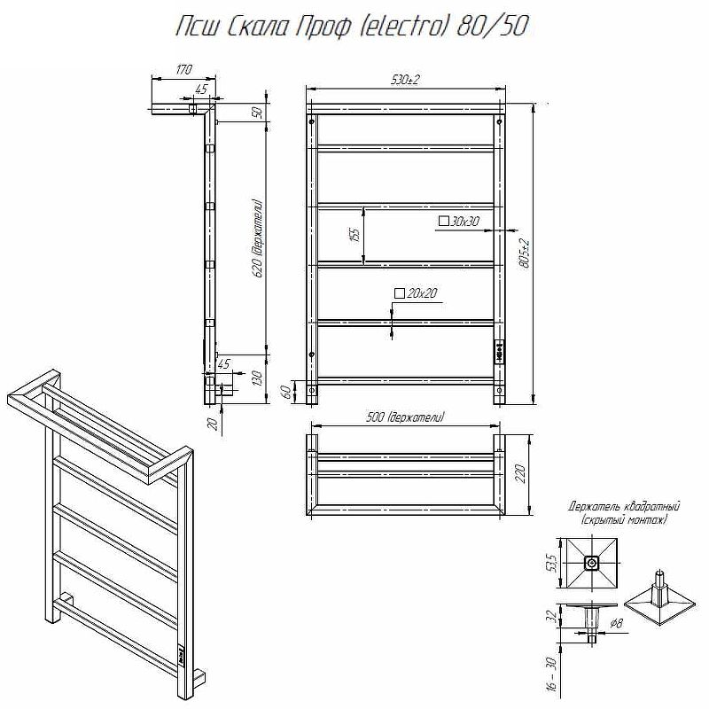 Электрический полотенцесушитель Altasan СкалаПроф СкалаПроф8050ПЧМ с полкой Черный муар 80х50