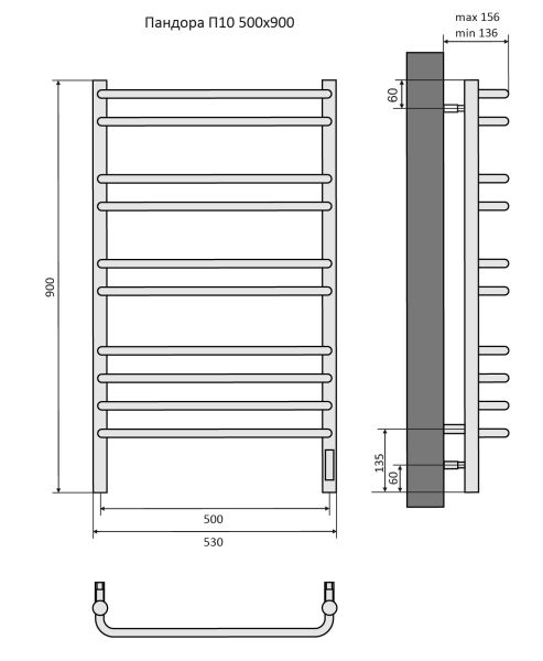 Полотенцесушитель электрический Aquatek (Акватек) Пандора П10 500х900 мм, подключение скрытое к сети электропитания / электропровод с вилкой, с терморегулятором и таймером quick touch, нержавеющая сталь AISI 201, гарантия 5 летХарактеристики:32х18,ВСТРОЕННЫЙ ДИММЕРКомплектация:полотенцесушитель;