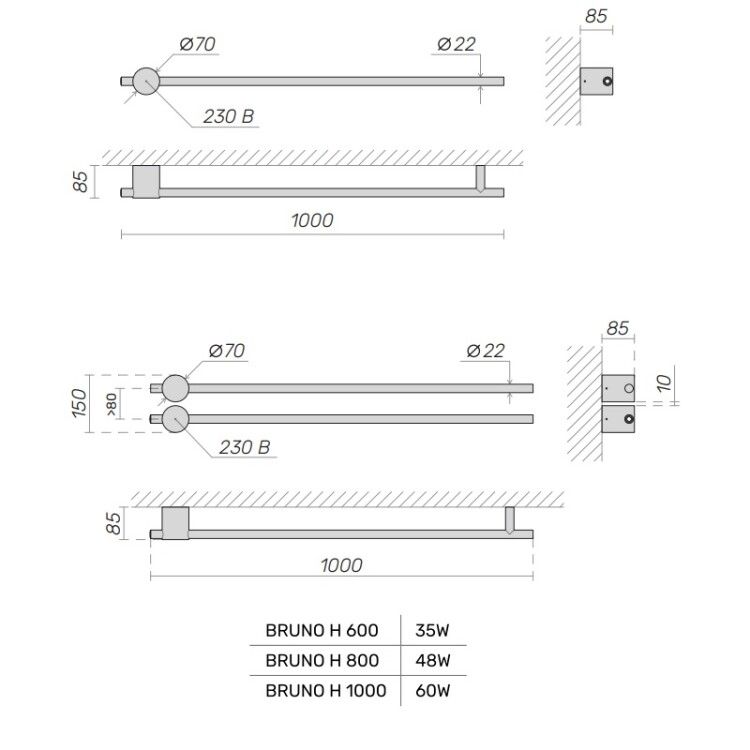 Broner Bruno BR.007.080.0000.RAL 9005M Полотенцесушитель электрический 800 мм (черный матовый). С кнопкой вкл/выкл. 70х800х60. Вертикальный или горизонтальный монтаж. Дизайнерский полотенцесушитель. Простота, элегантность и функциональность — вот ключевые характеристики электрического вертикального полотенцесушителя BRUNO. П/с Бруно органично впишется в любой интерьер, будь то миниатюрная ванная комната или просторное помещение. Он отличается высокой энергоэффективностью, так как его расход электроэнергии сравним с обычной лампочкой. Вы можете заказать этот стильный аксессуар в любом цвете по шкале RAL. Номинальное напряжение 220В, номинальная температура поверхности полотенцесушителя 65±5 , режим работы постоянный, время разогрева 10-15 минут, низкое энергопотребление, масса нагрузки на полотенцесушитель не более 5 кг, материал корпуса нержавеющая сталь AISI304. КОМПЛЕКТ ПОСТАВКИ: полотенцесушитель электрический -1шт. Набор деталей и инструментов для настенного крепления – 1шт. Паспорт, упаковка (плёнка полиэтиленовая, картонная коробка) - 1шт. Срок службы 10 лет. Гарантия 1 год, Россия.