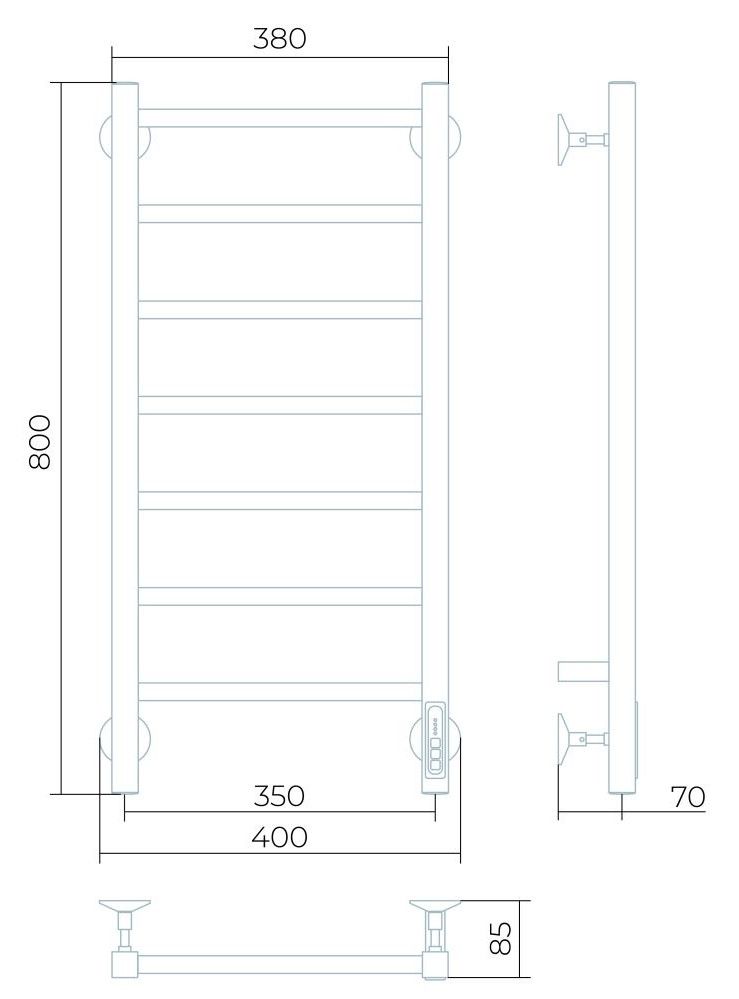 Полотенцесушитель предназначен для сушки тканевых изделий и обогрева ванных и душевых.Благодаря оптимальному химическому составу, современным промышленным технологиям и применяемому материалу "сталь" изделие отличается высокой коррозионной стойкостью при эксплуатации в органических кислотных и прочих умеренно агрессивных средах.Заглушки на концах стоек, тип диммера - кнопочный (Quick Touch), крепления к стене.