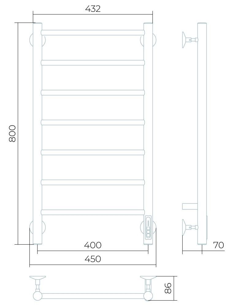Заглушки на концах стоек, тип диммера - кнопочный (Quick Touch), крепления к стене.