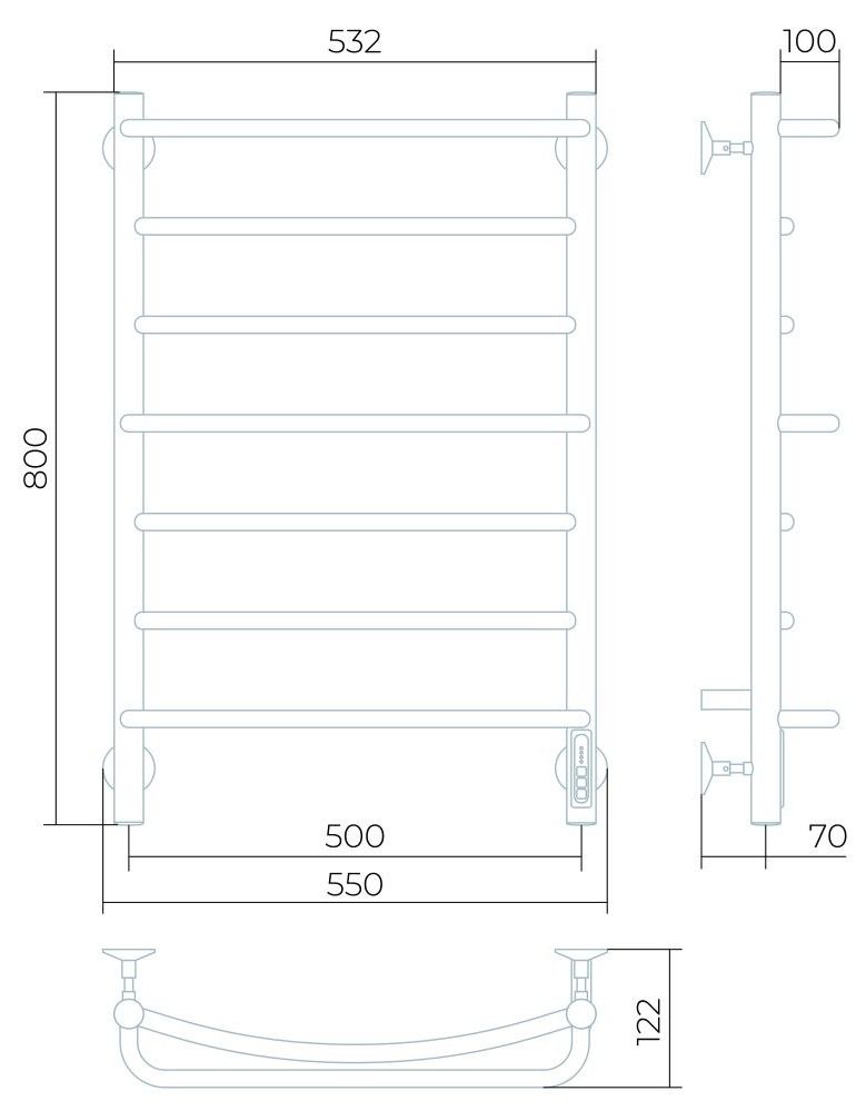 Заглушки на концах стоек, тип диммера - кнопочный (Quick Touch), крепления к стене.