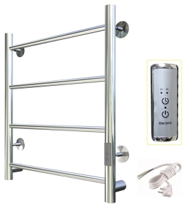 ПЭК — Полотенцесушитель электрический кабельный. Изделие производится из нержавеющей стали AISI 201. Вертикальные трубы d -32 мм., для горизонтальных вставок используется труба d — 18 мм.Нагревательным элементом в полотенцесушителе является греющий кабель — аналог «теплого пола», кабель заправляется внутрь каждой трубы и передает тепло на поверхность изделия. Во включенном состоянии постоянно поддерживается температура 40-600.Встроенная функция регулировки температуры: 40 / 50 / 60 градусов Экономичность: Полотенцесушитель снабжен панелью управления. Кнопка включения/выключения и таймер на 2 / 4 / 6 часов , который позволяет включать изделие на ограниченное время. Эта функция дает возможность экономить электричество.Мощность электрического прибора порядка 60W при стоимости 1 кВт — 5 руб несложно посчитать: 60W х 24 = 1,5 кВт в сутки. Стоимость эксплуатации изделия за сутки 1,5 кВт х 5 руб. = 7,5 руб. Максимальный расход электричества за месяц примерно 225 руб. При условии если сушка работает круглосуточно.Удобство монтажа: Полотенцесушитель крепится к стене на четыре держателя. Универсальное исполнение изделия позволяет подключить его, как справа, так и слева.Скрытое подключение: Благодаря приваренным в нижней части вертикальных труб двум распаячным коробкам, в которых соединяется электропроводка, возможно скрытое подключение к электричеству слева и справа.Подключение в розетку: В комплекте также имеется шнур с вилкой, который будет необходим при подключении к розетке.Панель включения:РЕЖИМ №1 — работа в течение 2 часов с последующим отключением.РЕЖИМ №2 — работа в течение 4 часов с последующим отключением.РЕЖИМ №3 — работа в течение 6 часов с последующим отключением.