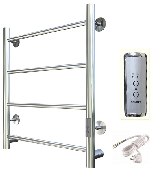 ПЭК — Полотенцесушитель электрический кабельный. Изделие производится из нержавеющей стали AISI 201. Вертикальные трубы d -32 мм., для горизонтальных вставок используется труба d — 18 мм.Нагревательным элементом в полотенцесушителе является греющий кабель — аналог «теплого пола», кабель заправляется внутрь каждой трубы и передает тепло на поверхность изделия. Во включенном состоянии постоянно поддерживается температура 40-600.Встроенная функция регулировки температуры: 40 / 50 / 60 градусов Экономичность: Полотенцесушитель снабжен панелью управления. Кнопка включения/выключения и таймер на 2 / 4 / 6 часов , который позволяет включать изделие на ограниченное время. Эта функция дает возможность экономить электричество.Мощность электрического прибора порядка 60W при стоимости 1 кВт — 5 руб несложно посчитать: 60W х 24 = 1,5 кВт в сутки. Стоимость эксплуатации изделия за сутки 1,5 кВт х 5 руб. = 7,5 руб. Максимальный расход электричества за месяц примерно 225 руб. При условии если сушка работает круглосуточно.Удобство монтажа: Полотенцесушитель крепится к стене на четыре держателя. Универсальное исполнение изделия позволяет подключить его, как справа, так и слева.Скрытое подключение: Благодаря приваренным в нижней части вертикальных труб двум распаячным коробкам, в которых соединяется электропроводка, возможно скрытое подключение к электричеству слева и справа.Подключение в розетку: В комплекте также имеется шнур с вилкой, который будет необходим при подключении к розетке.Панель включения:РЕЖИМ №1 — работа в течение 2 часов с последующим отключением.РЕЖИМ №2 — работа в течение 4 часов с последующим отключением.РЕЖИМ №3 — работа в течение 6 часов с последующим отключением.