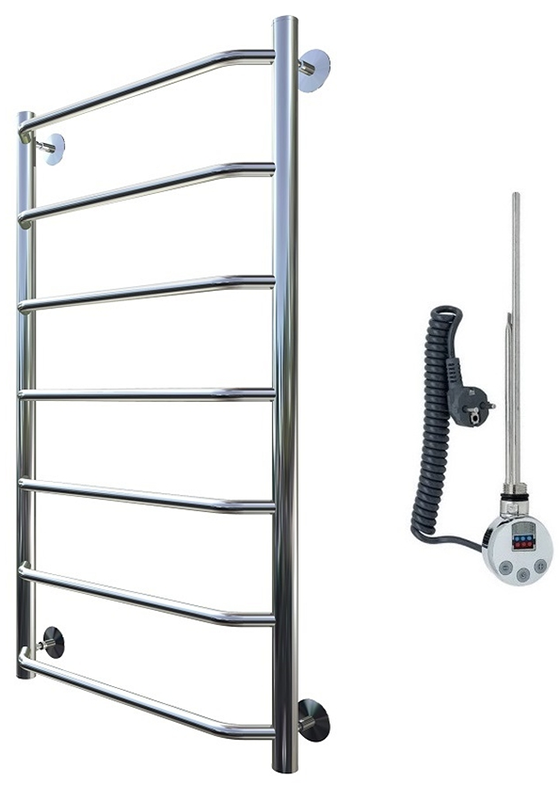 Внимание! Для скрытого монтажа электропроводки необходимо приобрести комплект скрытого подключения.Полотенцесушитель электрический комплектуется ТЭНом с терморегулятором и таймером.Изделие производится из нержавеющей стали AISI 201. Вертикальные трубы d -32 мм., для горизонтальных вставок используется труба d — 18 мм.Нагревательным элементом в полотенцесушителе является ТЭН. Полотенцесушитель заполнен бытовым антифризомЭкономичность: ТЭН нагревает антифриз до нужной температуры и выключается, далее при остывании полотенцесушителя он включается опять. Таким образом он работает не постоянно и получается, что ТЭН потребляет электричество не 300 Вт, а порядка 100 — 150 ВтМощность электрического прибора порядка 100 Вт при стоимости 1 Вт — 5 руб несложно посчитать: 100Вт х 24 = 2,4 кВт в сутки. Стоимость эксплуатации изделия за сутки 2,4 кВт х 5 руб. = 12 руб. При максимальной температуре расход электричества за 30 дней составит порядка 360 руб. При условии если сушка работает круглосуточно на максимальной температуре.Удобство монтажа: Полотенцесушитель крепится к стене на четыре держателя. Изначально ТЭН не установлен в полотенцесушитель для безопасной транспортировки, его можно установить, как справа, так и слева предварительно перевернув полотенцесушитель вверх ногами и выкрутив заглушку с нужной стороны на место в которое установится ТЭН.Примечание. Внимательно изучите инструкцию по установке ТЭНа!Скрытое подключение: Для скрытого монтажа электропроводки необходимо приобрести комплект скрытого подключения.Подключение в розетку: В комплекте с ТЭНом имеется шнур с вилкой, который будет необходим при подключении к розетке.