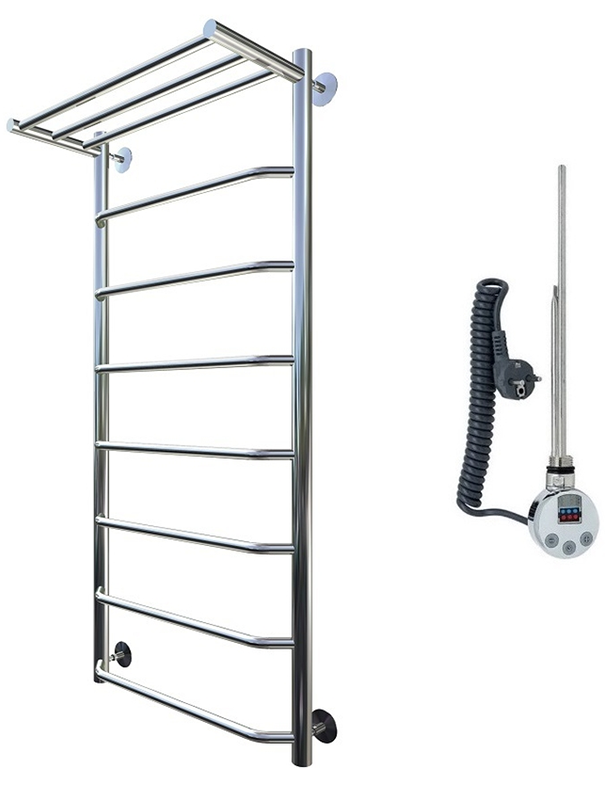 Внимание! Для скрытого монтажа электропроводки необходимо приобрести комплект скрытого подключения.Полотенцесушитель электрический комплектуется ТЭНом с терморегулятором и таймером.Изделие производится из нержавеющей стали AISI 201. Вертикальные трубы d -32 мм., для горизонтальных вставок используется труба d — 18 мм.Нагревательным элементом в полотенцесушителе является ТЭН. Полотенцесушитель заполнен бытовым антифризомЭкономичность: ТЭН нагревает антифриз до нужной температуры и выключается, далее при остывании полотенцесушителя он включается опять. Таким образом он работает не постоянно и получается, что ТЭН потребляет электричество не 300 Вт, а порядка 100 — 150 ВтМощность электрического прибора порядка 100 Вт при стоимости 1 Вт — 5 руб несложно посчитать: 100Вт х 24 = 2,4 кВт в сутки. Стоимость эксплуатации изделия за сутки 2,4 кВт х 5 руб. = 12 руб. При максимальной температуре расход электричества за 30 дней составит порядка 360 руб. При условии если сушка работает круглосуточно на максимальной температуре.Удобство монтажа: Полотенцесушитель крепится к стене на четыре держателя. Изначально ТЭН не установлен в полотенцесушитель для безопасной транспортировки, его можно установить, как справа, так и слева предварительно перевернув полотенцесушитель вверх ногами и выкрутив заглушку с нужной стороны на место в которое установится ТЭН.Примечание. Внимательно изучите инструкцию по установке ТЭНа!Скрытое подключение: Для скрытого монтажа электропроводки необходимо приобрести комплект скрытого подключения.Подключение в розетку: В комплекте с ТЭНом имеется шнур с вилкой, который будет необходим при подключении к розетке.