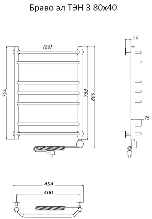 Электрический полотенцесушитель Тругор Браво 3 80x40см хром Браво3/элТЭН8040
