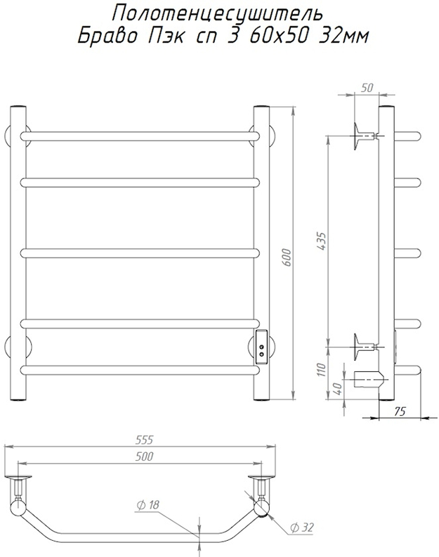Электрический полотенцесушитель Тругор Браво Пэк сп 3 60x50см хром БравоПэксп3П/605032