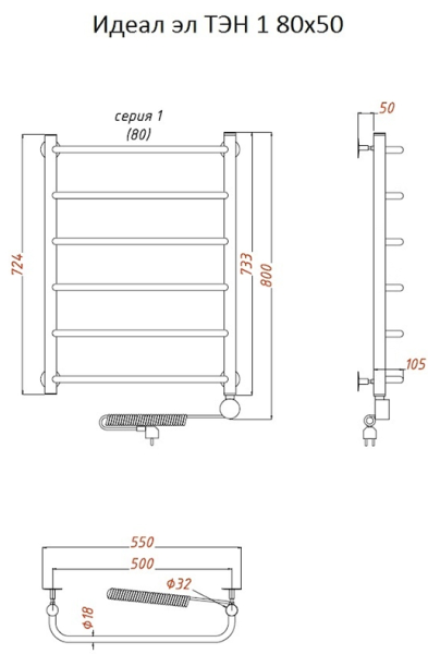 Электрический полотенцесушитель Тругор Идеал 1 80x50см хром Идеал1/элТЭН8050