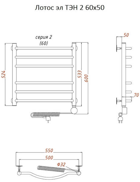 Электрический полотенцесушитель Тругор Лотос 2 60x50см хром Лотос2/элТЭН6050