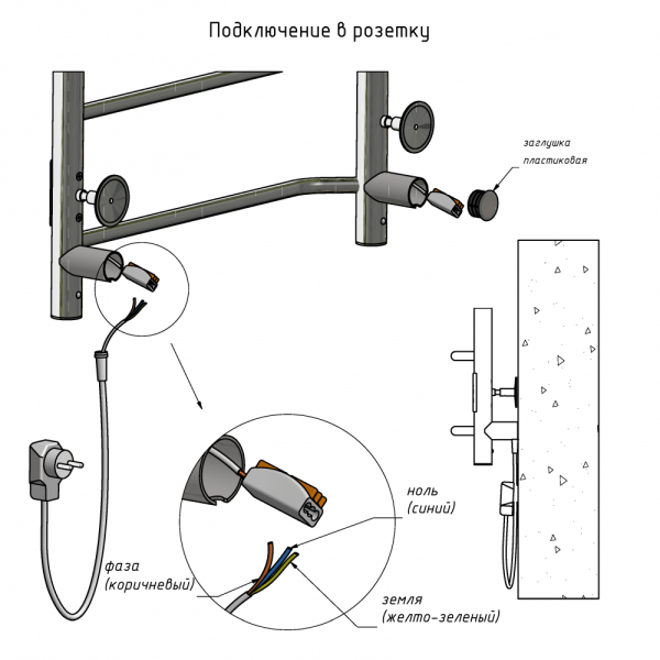 Внимание! Для скрытого монтажа электропроводки необходимо приобрести комплект скрытого подключения. Полотенцесушитель электрический комплектуется ТЭНом с терморегулятором и таймером. Изделие производится из нержавеющей стали AISI 201. Вертикальные трубы d -32 мм., для горизонтальных вставок используется труба d — 18 мм. Нагревательным элементом в полотенцесушителе является ТЭН. Полотенцесушитель заполнен бытовым антифризом.Экономичность: ТЭН нагревает антифриз до нужной температуры и выключается, далее при остывании полотенцесушителя он включается опять. Таким образом он работает не постоянно, и получается, что ТЭН потребляет электричество не 300 Вт, а порядка 100 — 150 Вт.Мощность электрического прибора порядка 100 Вт при стоимости 1 Вт — 5 руб несложно посчитать: 100Вт х 24 = 2,4 кВт в сутки. Стоимость эксплуатации изделия за сутки 2,4 кВт х 5 руб. = 12 руб. При максимальной температуре расход электричества за 30 дней составит порядка 360 руб. При условии если сушка работает круглосуточно на максимальной температуре.Удобство монтажа: Полотенцесушитель крепится к стене на четыре держателя. Изначально ТЭН не установлен в полотенцесушитель для безопасной транспортировки, его можно установить, как справа, так и слева предварительно перевернув полотенцесушитель вверх ногами и выкрутив заглушку с нужной стороны на место в которое установится ТЭН.Примечание. Внимательно изучите инструкцию по установке ТЭНа!Скрытое подключение: Для скрытого монтажа электропроводки необходимо приобрести комплект скрытого подключения.Подключение в розетку: В комплекте с ТЭНом имеется шнур с вилкой, который будет необходим при подключении к розетке.