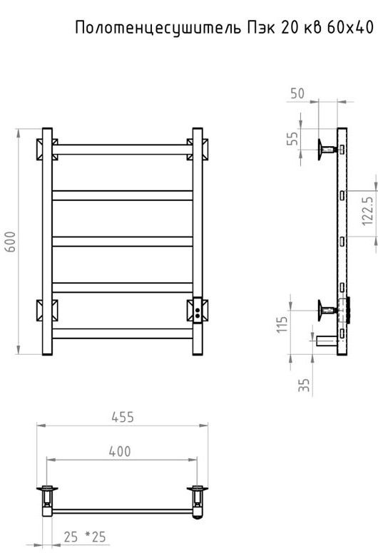 Электрический полотенцесушитель Тругор Пэк сп 20кв 60x40см чёрный ПЭКсп20кв/6040черныйВГП