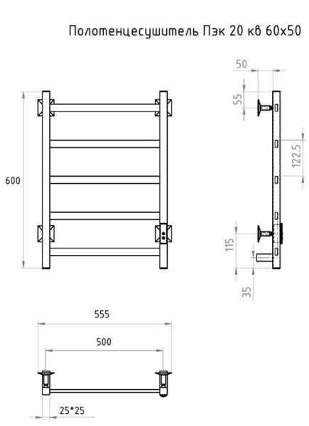 Электрический полотенцесушитель Тругор Пэк сп 20кв 60x50см чёрный ПЭКсп20кв/6050черныйВГП