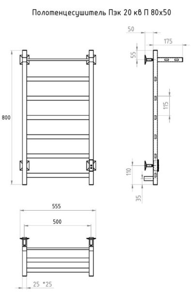 ПЭК — Полотенцесушитель электрический кабельный. Изделие производится из нержавеющей стали AISI 201. Вертикальные трубы d -32 мм., для горизонтальных вставок используется труба d — 18 мм.Нагревательным элементом в полотенцесушителе является греющий кабель — аналог «теплого пола», кабель заправляется внутрь каждой трубы и передает тепло на поверхность изделия. Во включенном состоянии постоянно поддерживается температура 50-600.Экономичность: Полотенцесушитель снабжен панелью управления. Кнопка включения/выключения и таймер на 2 часа и 4 часа, который позволяет включать изделие на ограниченное время. Эта функция дает возможность экономить электричество.Мощность электрического прибора порядка 60W при стоимости 1 кВт — 5 руб несложно посчитать: 60W х 24 = 1,5 кВт в сутки. Стоимость эксплуатации изделия за сутки 1,5 кВт х 5 руб. = 7,5 руб. Максимальный расход электричества за месяц примерно 225 руб. При условии если сушка работает круглосуточно.Удобство монтажа: Полотенцесушитель крепится к стене на четыре держателя. Универсальное исполнение изделия позволяет подключить его, как справа, так и слева.Скрытое подключение: Благодаря приваренным в нижней части вертикальных труб двум распаячным коробкам, в которых соединяется электропроводка, возможно скрытое подключение к электричеству слева и справа.Подключение в розетку: В комплекте также имеется шнур с вилкой, который будет необходим при подключении к розетке.Панель включения:РЕЖИМ №1 — постоянный нагревРЕЖИМ №2 — работа в течение 2 часов с последующим отключением.РЕЖИМ №3 — работа в течение 4 часов с последующим отключением.