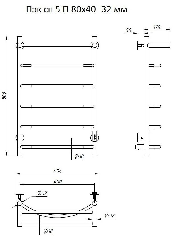 ПЭК — Полотенцесушитель электрический кабельный. Изделие производится из нержавеющей стали AISI 201. Вертикальные трубы d -32 мм., для горизонтальных вставок используется труба d — 18 мм.Нагревательным элементом в полотенцесушителе является греющий кабель — аналог «теплого пола», кабель заправляется внутрь каждой трубы и передает тепло на поверхность изделия. Во включенном состоянии постоянно поддерживается температура 50-600.Экономичность: Полотенцесушитель снабжен панелью управления. Кнопка включения/выключения и таймер на 2 часа и 4 часа, который позволяет включать изделие на ограниченное время. Эта функция дает возможность экономить электричество.Мощность электрического прибора порядка 60W при стоимости 1 кВт — 5 руб несложно посчитать: 60W х 24 = 1,5 кВт в сутки. Стоимость эксплуатации изделия за сутки 1,5 кВт х 5 руб. = 7,5 руб. Максимальный расход электричества за месяц примерно 225 руб. При условии если сушка работает круглосуточно.Удобство монтажа: Полотенцесушитель крепится к стене на четыре держателя. Универсальное исполнение изделия позволяет подключить его, как справа, так и слева.Скрытое подключение: Благодаря приваренным в нижней части вертикальных труб двум распаячным коробкам, в которых соединяется электропроводка, возможно скрытое подключение к электричеству слева и справа.Подключение в розетку: В комплекте также имеется шнур с вилкой, который будет необходим при подключении к розетке.Панель включения:РЕЖИМ №1 — постоянный нагревРЕЖИМ №2 — работа в течение 2 часов с последующим отключением.РЕЖИМ №3 — работа в течение 4 часов с последующим отключением.
