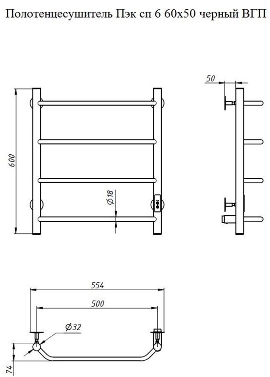 ПЭК — Полотенцесушитель электрический кабельный. Изделие производится из нержавеющей стали AISI 201. Вертикальные трубы d -32 мм., для горизонтальных вставок используется труба d — 18 мм.Нагревательным элементом в полотенцесушителе является греющий кабель — аналог «теплого пола», кабель заправляется внутрь каждой трубы и передает тепло на поверхность изделия. Во включенном состоянии постоянно поддерживается температура 50-600.Экономичность: Полотенцесушитель снабжен панелью управления. Кнопка включения/выключения и таймер на 2 часа и 4 часа, который позволяет включать изделие на ограниченное время. Эта функция дает возможность экономить электричество.Мощность электрического прибора порядка 60W при стоимости 1 кВт — 5 руб несложно посчитать: 60W х 24 = 1,5 кВт в сутки. Стоимость эксплуатации изделия за сутки 1,5 кВт х 5 руб. = 7,5 руб. Максимальный расход электричества за месяц примерно 225 руб. При условии если сушка работает круглосуточно.Удобство монтажа: Полотенцесушитель крепится к стене на четыре держателя. Универсальное исполнение изделия позволяет подключить его, как справа, так и слева.Скрытое подключение: Благодаря приваренным в нижней части вертикальных труб двум распаячным коробкам, в которых соединяется электропроводка, возможно скрытое подключение к электричеству слева и справа.Подключение в розетку: В комплекте также имеется шнур с вилкой, который будет необходим при подключении к розетке.Панель включения:РЕЖИМ №1 — постоянный нагревРЕЖИМ №2 — работа в течение 2 часов с последующим отключением.РЕЖИМ №3 — работа в течение 4 часов с последующим отключением.