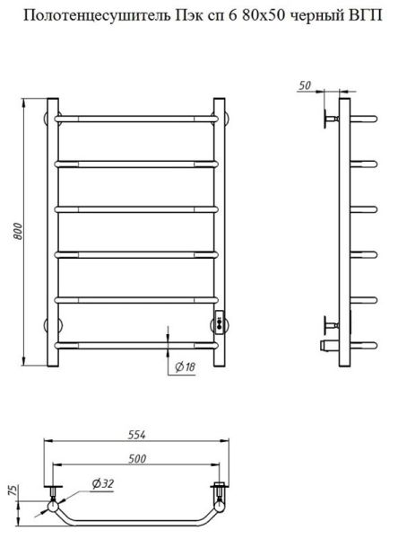 Электрический полотенцесушитель Тругор Пэк сп 6 80x50см чёрный Пэксп6/8050черныйВГП