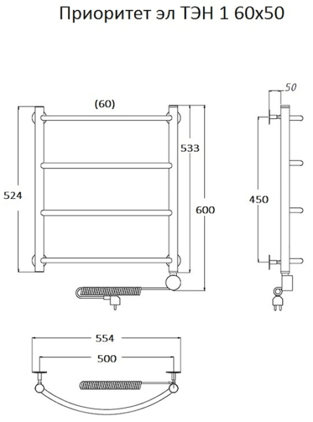 Электрический полотенцесушитель Тругор Приоритет 1 60x50см хром Приоритет1/элТЭН6050
