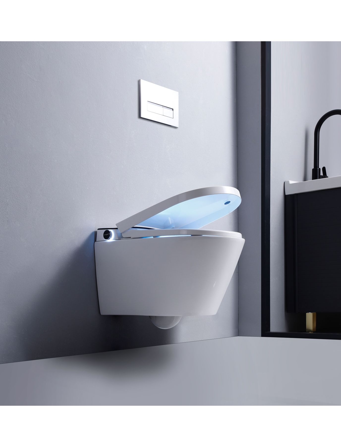 Электронный подвесной унитаз-биде TIMO TЕ-751B белый/черная панель купить