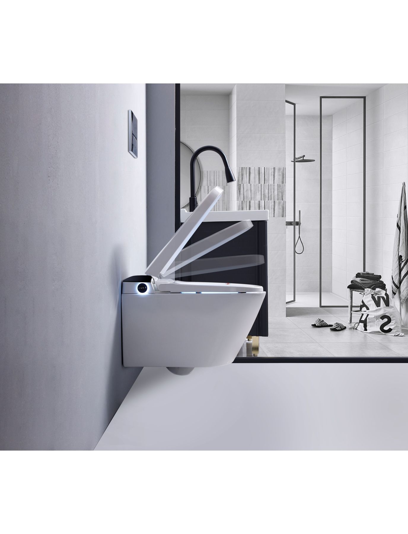 Электронный подвесной унитаз-биде TIMO TЕ-751B белый/черная панель