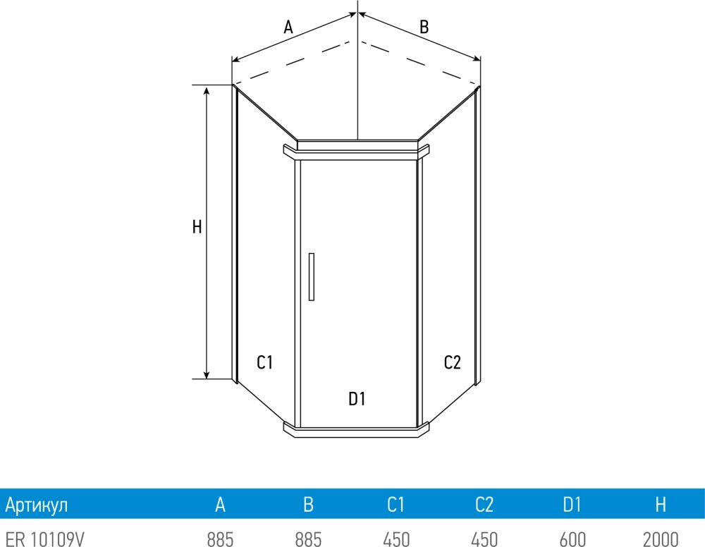 Erlit Comfort ER10109V-C1 90x90x200 Душевой уголок купить