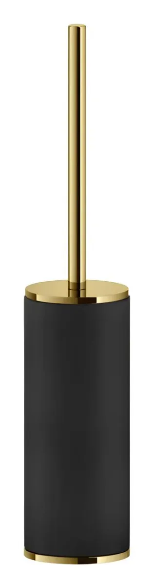 Ёршик Gessi Inciso в напольном исполнении, выполненный в цвете Black/Gold PVD, сочетает лаконичные формы с выразительным контрастом отделок. Чёрная база подчёркивает тёплый металлический блеск золота, создавая акцентный элемент для ванной комнаты.