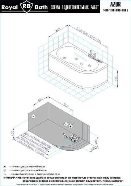 Акриловая ванна Royal Bath - идеальный выбор для создания атмосферы релакса и умиротворения, как в просторной в ванной комнате, так и в комнатном санузле. Основным преимуществом ванны из акрила считается её малый вес, высокая гигиеничность данного материала и низкая теплопроводность, долго сохраняющая комфортную температуру воды.Форма ванны Royal Bath замечательно подойдет к любому интерьерному решению, в различных вариантах размещения внутри ванной комнаты. Пристенная установка - это наиболее традиционный вид установки, а при использовании декоративного экрана пространство под ванной можно использовать как место хранения моющих средств. Оптимальная глубина позволяет принимать ванну с максимальным комфортом и полным расслаблением. Ванна Royal Bath выполнена со строгим соблюдением всех значительных элементов современного стиля.Благодаря тому, что родина бренда Royal Bath - Россия, можно смело быть уверенным в непревзойденном качестве и долговечности ванны, так как производство полностью соответствует стандартам качества. Акриловая ванна Royal Bath - это незаменимый, основной элемент любой ванной комнаты, без которого невозможно обойтись, ни в многоквартирном доме, ни в загородном коттедже.Комплектация гидромассажной ванны:- акриловая ванна Azur 140x80x60;- каркас сварной к ванне Azur 140;- панель к ванне Azur 140;- гидромассажная система на 5 форсунок;- спинной массаж на 6 форсунок;- аэромассаж с хромотерапией 8 форсунок;- слив-перелив для ванны полуавтомат 60 см.Ожидаемый срок поставки 7 дней.Обратите внимание: данная позиция поставляется под заказ! Товар поставляется по 100%-ной предоплате.Данный товар является заказным и имеет индивидуально-определенные свойства.
