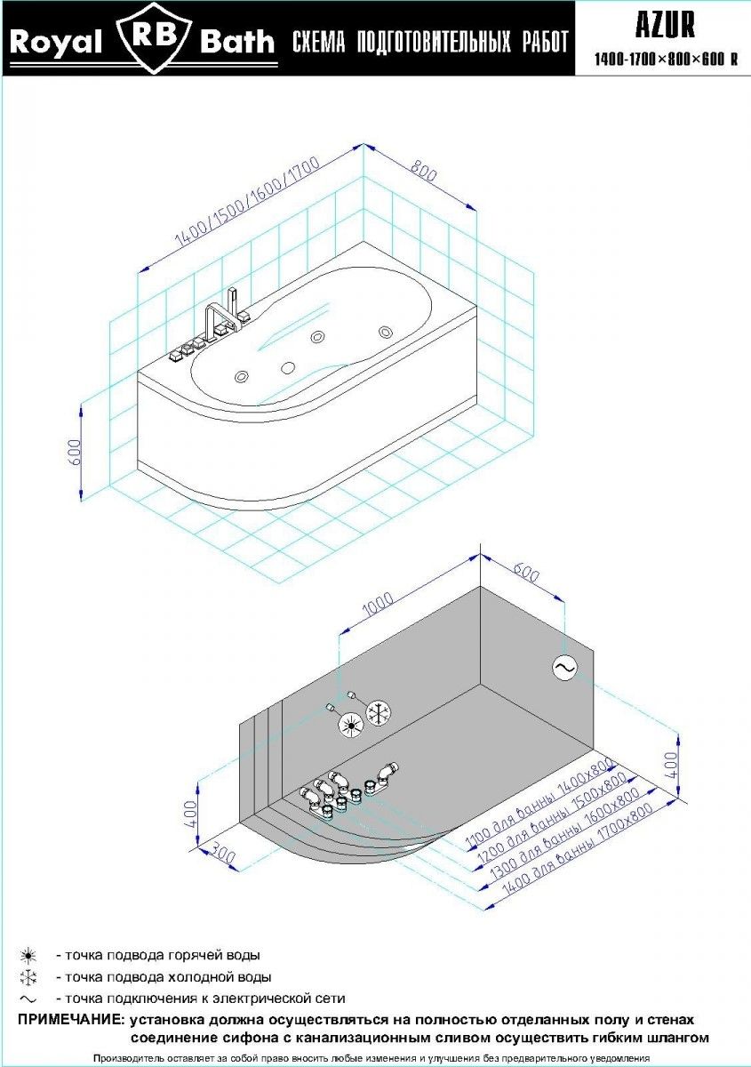 Акриловая ванна Royal Bath - идеальный выбор для создания атмосферы релакса и умиротворения, как в просторной в ванной комнате, так и в комнатном санузле. Основным преимуществом ванны из акрила считается её малый вес, высокая гигиеничность данного материала и низкая теплопроводность, долго сохраняющая комфортную температуру воды.Форма ванны Royal Bath замечательно подойдет к любому интерьерному решению, в различных вариантах размещения внутри ванной комнаты. Пристенная установка - это наиболее традиционный вид установки, а при использовании декоративного экрана пространство под ванной можно использовать как место хранения моющих средств. Оптимальная глубина позволяет принимать ванну с максимальным комфортом и полным расслаблением. Ванна Royal Bath выполнена со строгим соблюдением всех значительных элементов современного стиля.Благодаря тому, что родина бренда Royal Bath - Россия, можно смело быть уверенным в непревзойденном качестве и долговечности ванны, так как производство полностью соответствует стандартам качества. Акриловая ванна Royal Bath - это незаменимый, основной элемент любой ванной комнаты, без которого невозможно обойтись, ни в многоквартирном доме, ни в загородном коттедже.Комплектация гидромассажной ванны:- акриловая ванна Azur 150x80x60;- каркас сварной к ванне Azur 150;- панель к ванне Azur 150;- гидромассажная система на 5 форсунок;- спинной массаж на 6 форсунок;- аэромассаж с хромотерапией 8 форсунок;- слив-перелив для ванны полуавтомат 60 см.Ожидаемый срок поставки 7 дней.Обратите внимание: данная позиция поставляется под заказ! Товар поставляется по 100%-ной предоплате.Данный товар является заказным и имеет индивидуально-определенные свойства.