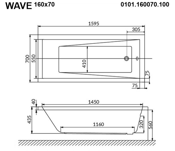 Гидромассажная ванна Whitecross Wave 0101.160070.100.RELAX.BR 160x70см Relax бронза