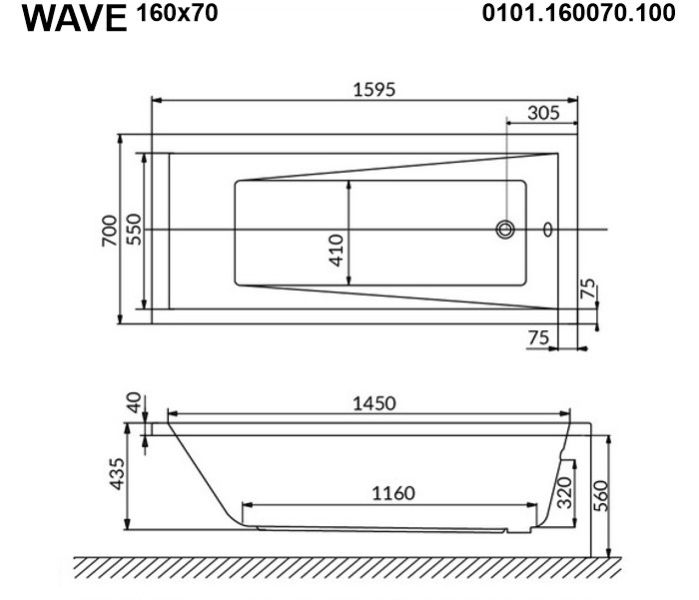 Гидромассажная ванна Whitecross Wave 0101.160070.100.SOFT.BR 160x70см Soft бронза