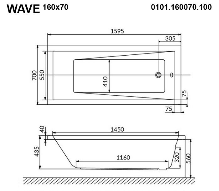 Гидромассажная ванна Whitecross Wave 0101.160070.100.SOFT.GL 160x70см Soft золото